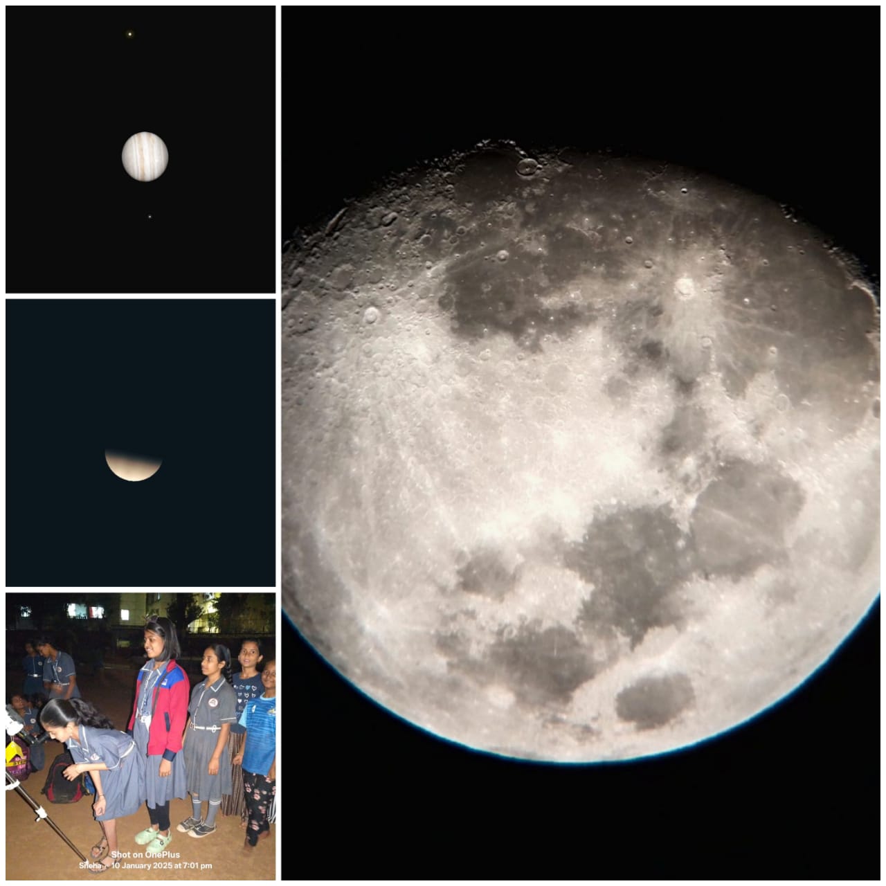 10 जानेवारी 2025 शुक्रवार रोजी संध्याकाळी 6.30 ते 7.30 या वेळेमध्ये रेणुका स्वरूप प्रशालेत सचिन पानवलकर अवकाश लॅब केंद्राचे समन्वयक प्राध्यापक विशाल कुंभारे सर यांनी दुर्बिणींच्या माध्यमातून अवकाशाचचे निरीक्षण करण्यासाठी मार्गदर्शन केले. या कार्यक्रमामध्ये प्रशालेतील 40 विद्यार्थिनींनी सहभाग घेतला.कुंभारे सर यांनी ग्रह व सूर्यमाले विषयी अतिशय सुंदर माहिती विद्यार्थिनींना दिली. तेजस्वी शुक्र ग्रह , गुरु ग्रहावरील कडी व त्याचे चार चंद्र तसेच चंद्र, त्यावरील पृष्ठभाग व खड्डे हे दुर्बीणीच्या माध्यमातून सुस्पष्टपणे दिसले. नयनरम्य अशा सुंदर ग्रहांचा प्रत्यक्ष दुर्बीणीतून पाहण्याचा अनुभव प्रशालेतील शिक्षकांनी देखील घेतला.आकाश निरीक्षणासाठी प्रशालेच्या मुख्याध्यापिका सौ. कांबळे शुभांगी व सहाय्यक शिक्षिका मानसी पवार, उमा गोंधळेकर, रुपाली शितोळे, धार्मिक चंचला व माजी शिक्षिका सौ. लता त्रंबके उपस्थित होत्या.