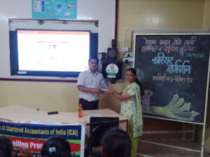 इन्स्टिट्यूट ऑफ चार्टर्ड अकौंटंट दिल्ली यांच्याकडून श्री दिनेश शेठ सर यांनी विद्यार्थिनींना मार्गदर्शन केले.