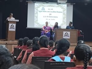 दिनांक १४ जुलै २०२३, उच्च माध्यमिक विभागातील इयत्ता १२ वी च्या विद्यार्थिनींशी पुणे पोलीस नार्कोटिक्स विभागातील पोलीस उपनिरीक्षक श्री ज्ञानेश्वर घोरपडे आणि औंध हॉस्पिटल येथे कार्यरत सामाजिक कार्यकर्त्या श्रीमती मोहिनी सुरवसे यांनी विद्यार्थिनींशी संवाद साधला. सामाजात व्यसनासंदर्भात घडणाऱ्या चुकीच्या घटनांना कसे कमी करता येईल, व्यसने कोणत्या प्रकारची असतात, आपल्याला एखादे व्यसन असल्यास ते लपवून न ठेवता शिक्षक व पालकांशी संवाद साधून कसे कमी करता येईल, व्यसनांमुळे मानवी शरीरावर कोणते दुष्परिणाम होतात, आपल्या कुटुंबातील व्यक्तींचे व्यसन कसे कमी करता येईल इत्यादी विषयांवर PPT सादरीकरण करून चर्चा करण्यात आली.