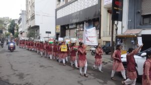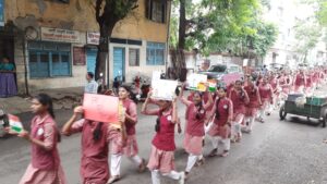 या प्रभात फेरीसाठी विद्यार्थिनींनी विविध प्रकारचे बोध वाक्य असलेले फलक तयार करून आणले होते. “घर घर तिरंगा… हर घर तिरंगा” या घोषणा देत स्वातंत्र्याचा अमृत मोहोत्सव प्रभात फेरीद्वारे संपन्न झाला.