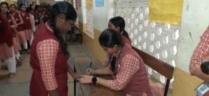 ११वी च्या सर्व विद्यार्थिनींना १२वी च्या विद्यार्थ्यांनी भेटकार्ड देऊन तसेच पेढा देऊन त्यांचे वर्गात स्वागत केले.